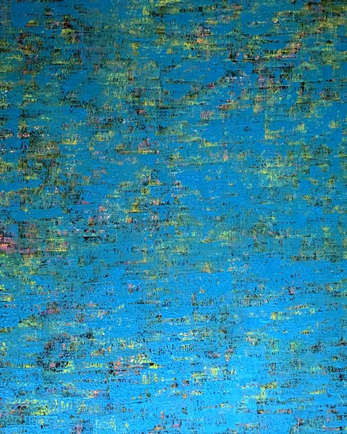 The original inspiration for this piece was a summer sunflower. As the work evolved it took on the texture and hues of moss.